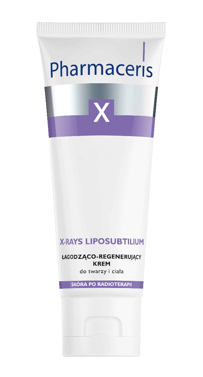 PHARMACERIS X XRAYS-LIPOSUBTILIUM Łagodząco-Regenerujący Krem Do Twarzy i Ciała - 75 ml jest dedykowany osobom poddanym radioterapii, które potrzebują specjalistycznej pielęgnacji skóry narażonej na uszkodzenia spowodowane promieniowaniem X. Produkt sprawdzi się u pacjentów wymagających łagodzenia podrażnień, zmniejszenia zaczerwienień oraz intensywnej regeneracji skóry twarzy i ciała. Krem można stosować zarówno w trakcie, jak i po zakończeniu leczenia radioterapeutycznego, aby wspierać naturalne procesy odnowy skóry.