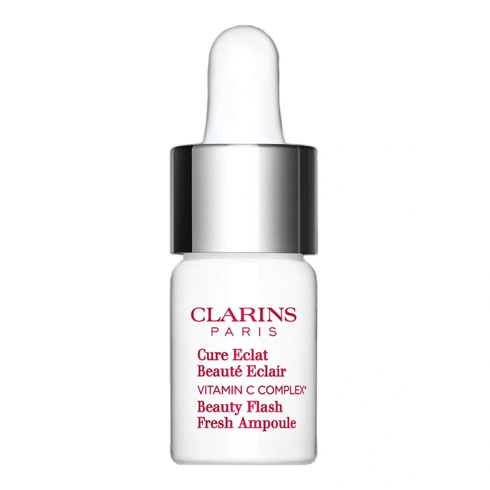 Kuracja w ampułce zawiera 15% skoncentrowany kompleks witaminy C oraz lekkie serum wzbogacone ekstraktami z superowoców – aceroli i mirtu różanego. Dzięki innowacyjnej butelce Clarins Fresh-Mix obie formuły łączą się dopiero w momencie aplikacji, zachowując pełnię swojej skuteczności. Z dnia na dzień skóra staje się bardziej jednolita, pełna blasku i wyraźnie rozświetlona. Kremowa, a jednocześnie lekka konsystencja Beauty Flash Fresh Ampoule zapewnia wysoki komfort stosowania.