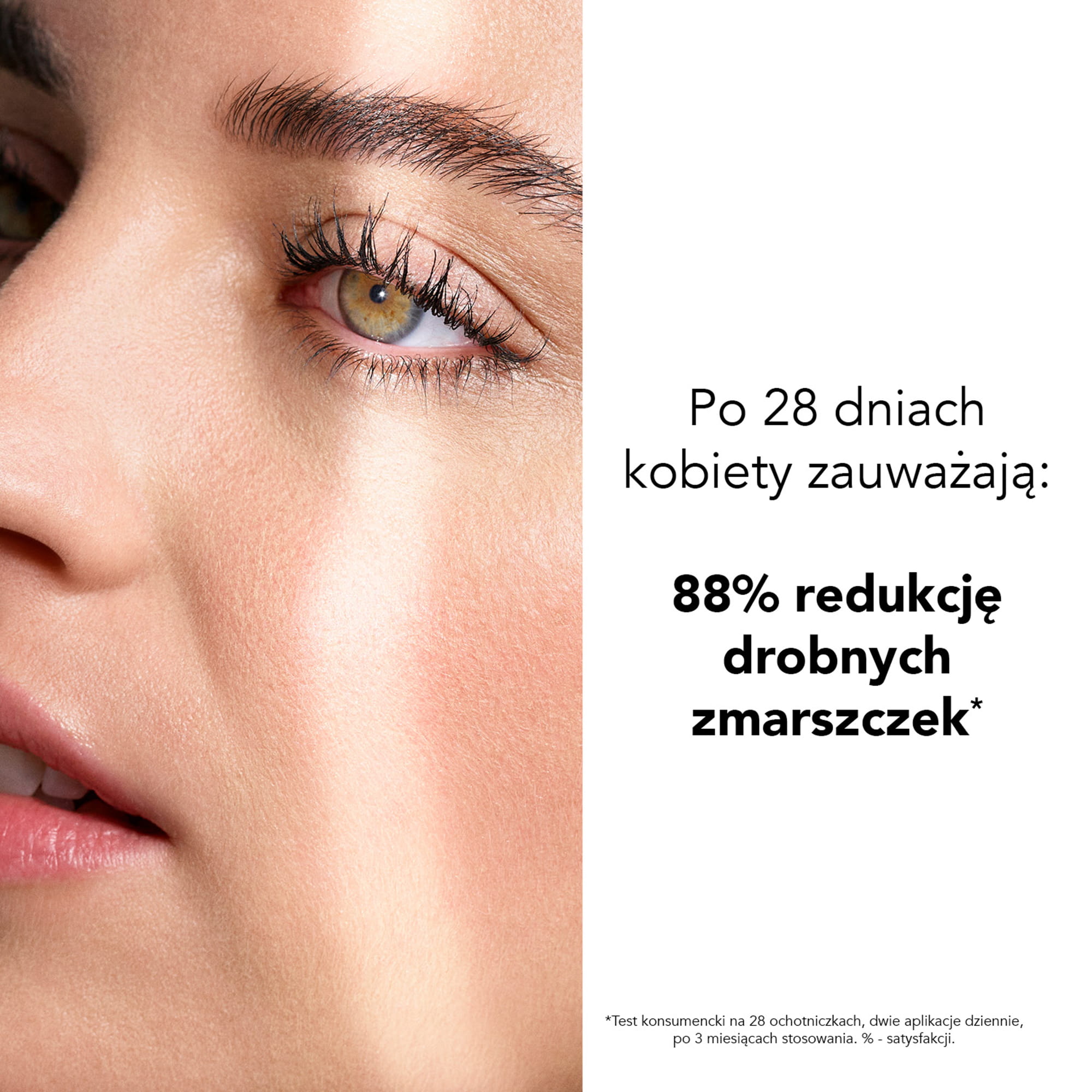 Nałóż krem, zaczynając od wewnętrznego kącika oka, a następnie rozmasuj pod okiem w kierunku skroni, aby pobudzić krążenie. Powtórz ten ruch trzy razy, a następnie przejdź do drugiego oka.