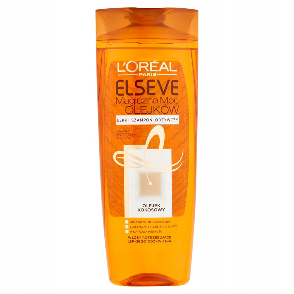 Szampon L'Oreal Paris Elseve Magiczna Moc Olejków z Olejkiem Kokosowym to produkt przeznaczony do włosów suchych i normalnych, który łączy w sobie właściwości odżywcze z lekką, nieobciążającą formułą. Jego receptura pozbawiona silikonu pozwala na dogłębne odżywienie włókien włosów, jednocześnie zachowując naturalną lekkość i miękkość, co sprawia, że włosy stają się bardziej elastyczne i pełne życia.