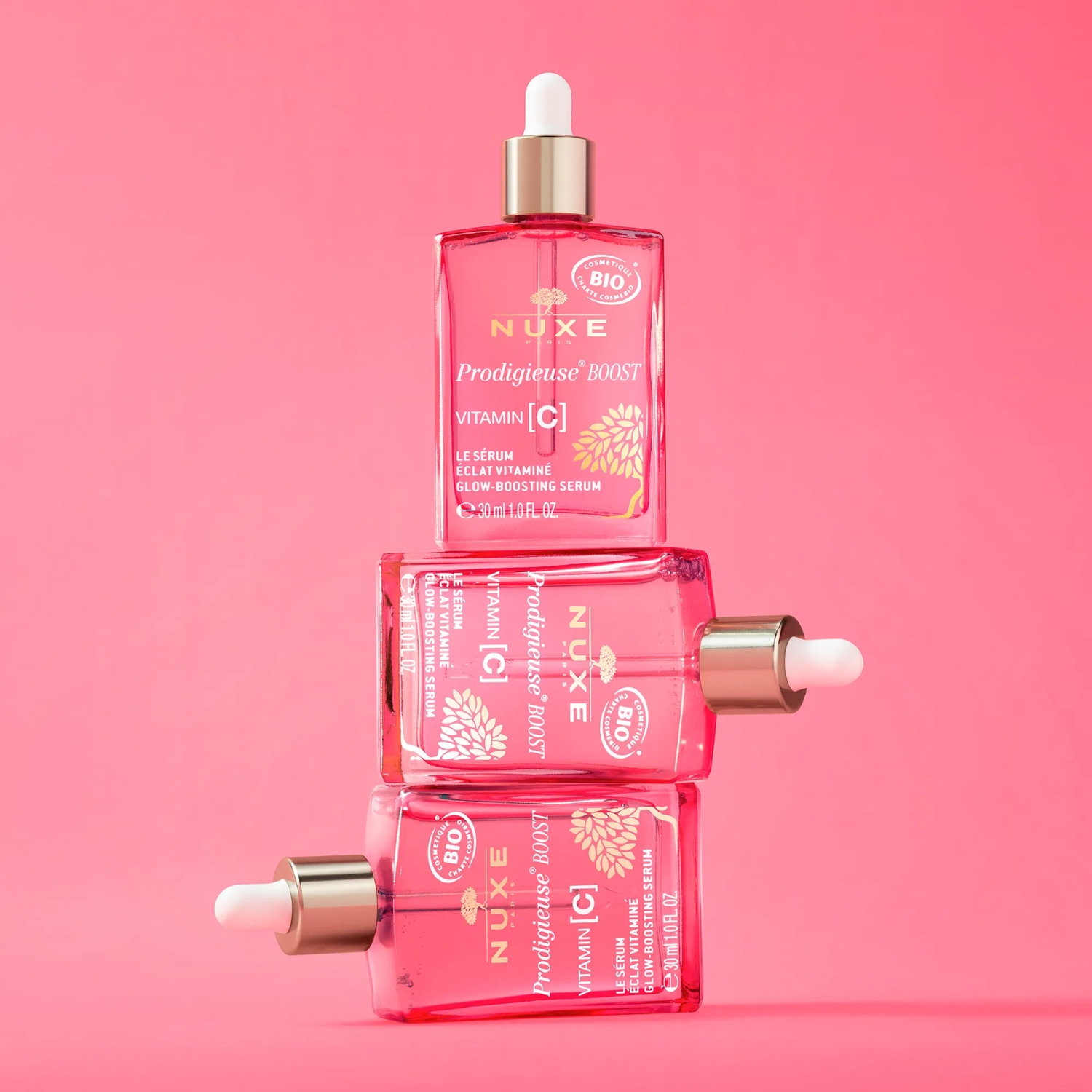 Trzy krople, które dodadzą blasku Twojej skórze! NUXE Prodigieuse® Boost Serum Rozświetlające z Witaminą C to nowoczesny produkt, który szybko wygładza i rozświetla skórę. Jego formuła, bazująca na składnikach naturalnych, skutecznie działa na pierwsze oznaki starzenia. Dzięki temu, Twoja skóra staje się jędrna i promienna. Już po kilku dniach zauważysz świeżość i zdrowy wygląd cery, co potwierdza aż 90% kobiet korzystających z tego serum.