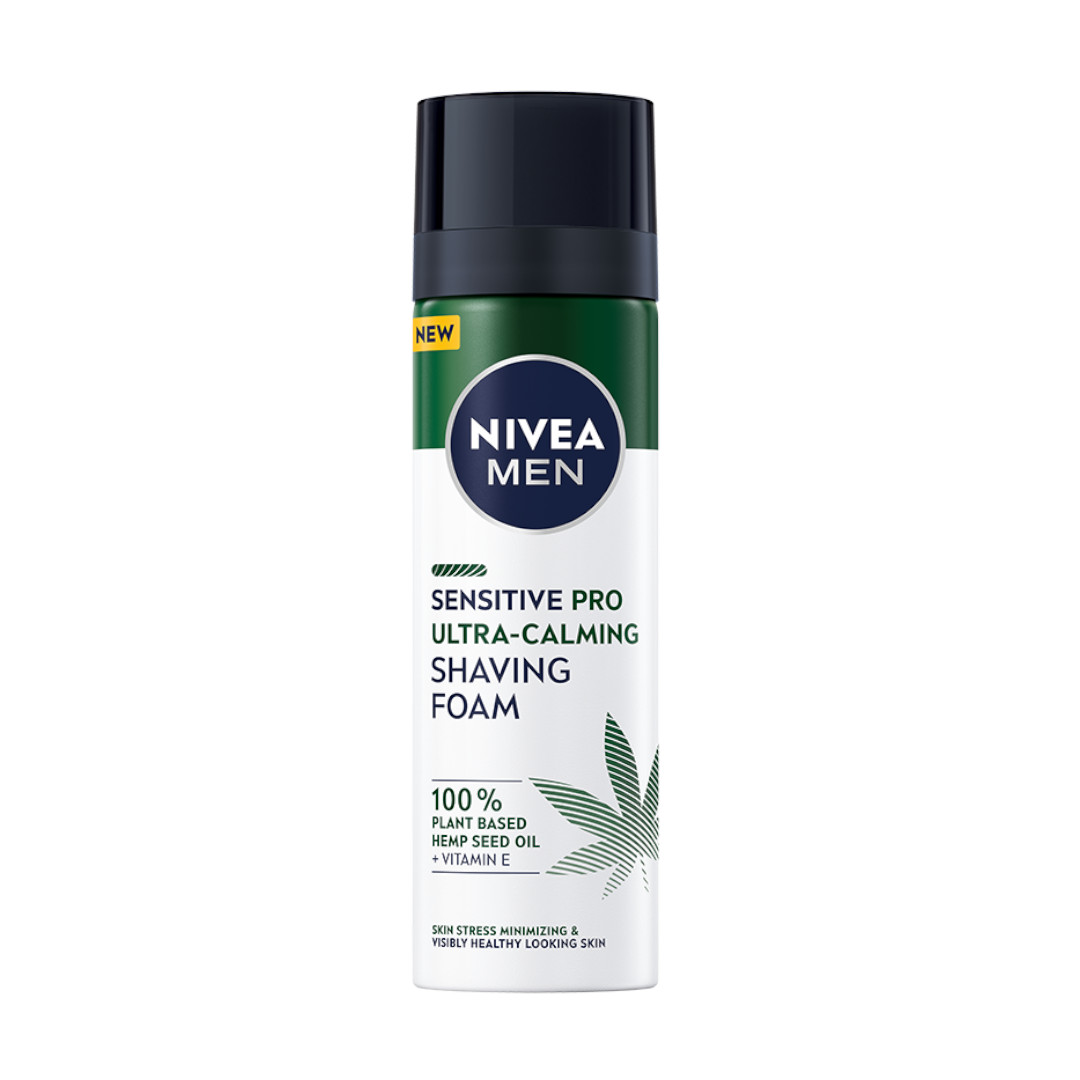 Nivea Men Sensitive Pro Ultra-Calming Shaving Foam wykorzystuje formułę opartą na 100% organicznym oleju z nasion konopnych, co jest rzadkością w produktach do golenia. Pianka jest odpowiednia dla osób prowadzących wegański styl życia, gdyż nie zawiera składników pochodzenia zwierzęcego. Opakowanie produktu wykonano w 25% z aluminium pochodzącego z recyklingu, co świadczy o dbałości marki Nivea o aspekty ekologiczne.