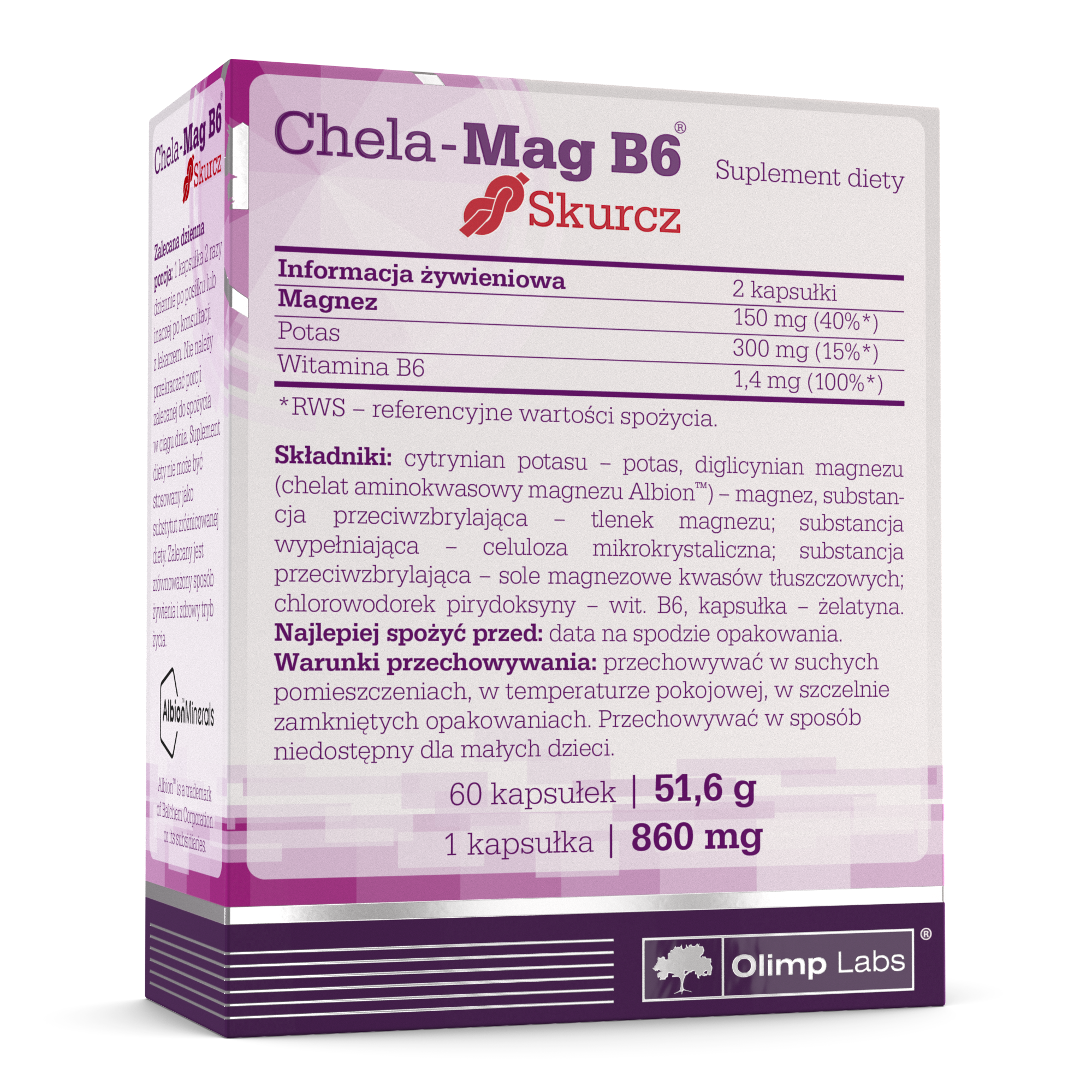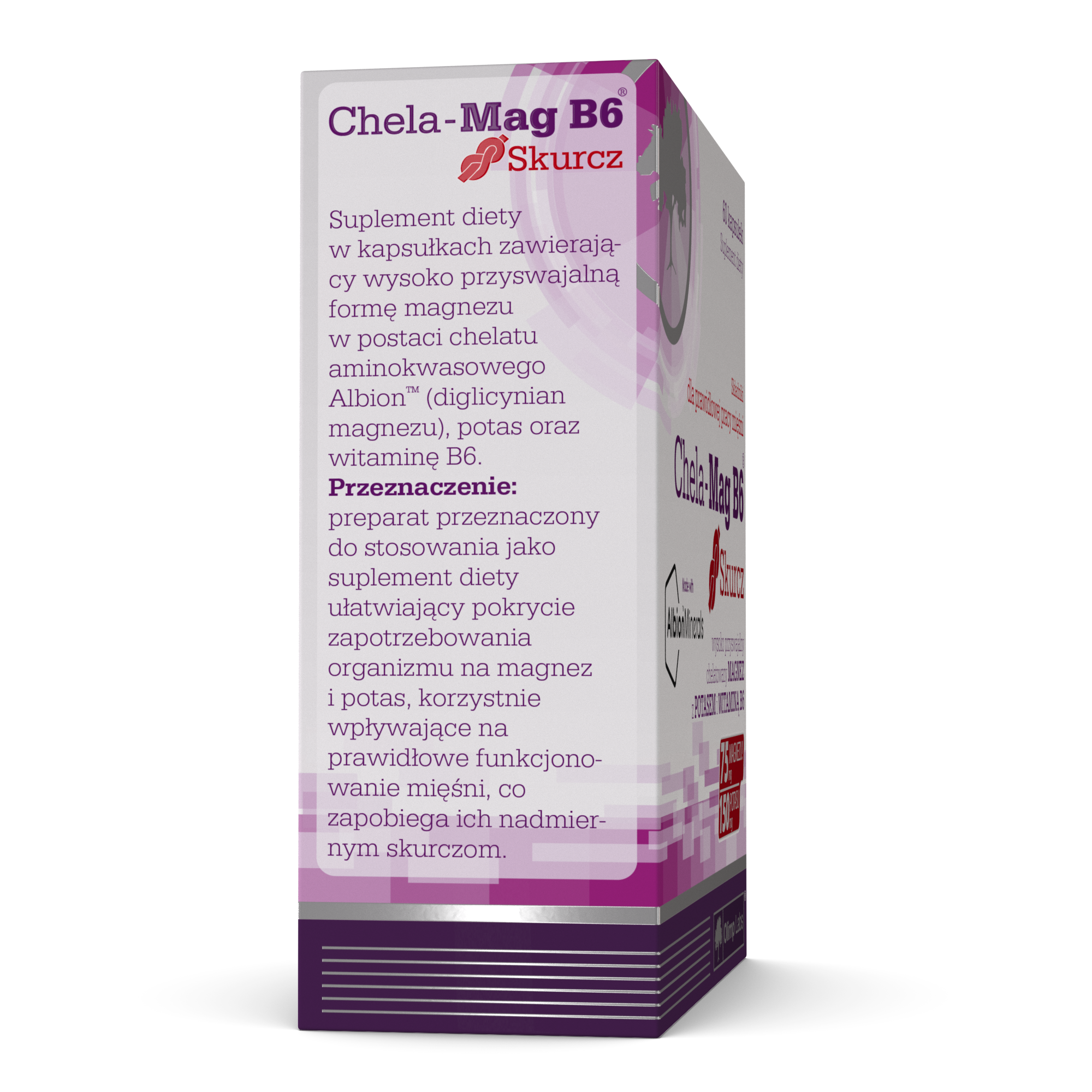 - Wybierz sprawdzoną jakość – OLIMP CHELA MAG B6 Skurcz to gwarancja wysokiej biodostępności i bezpieczeństwa.