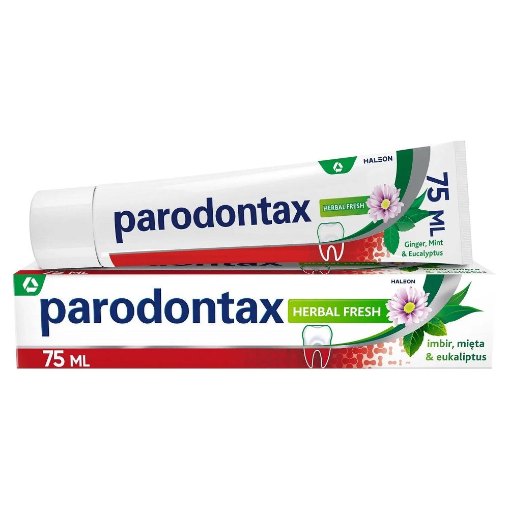 - Poczuj ulgę i świeżość w jamie ustnej dzięki ziołowemu smakowi pasty Parodontax Herbal Fresh, która dba o Twoje dziąsła i zęby.