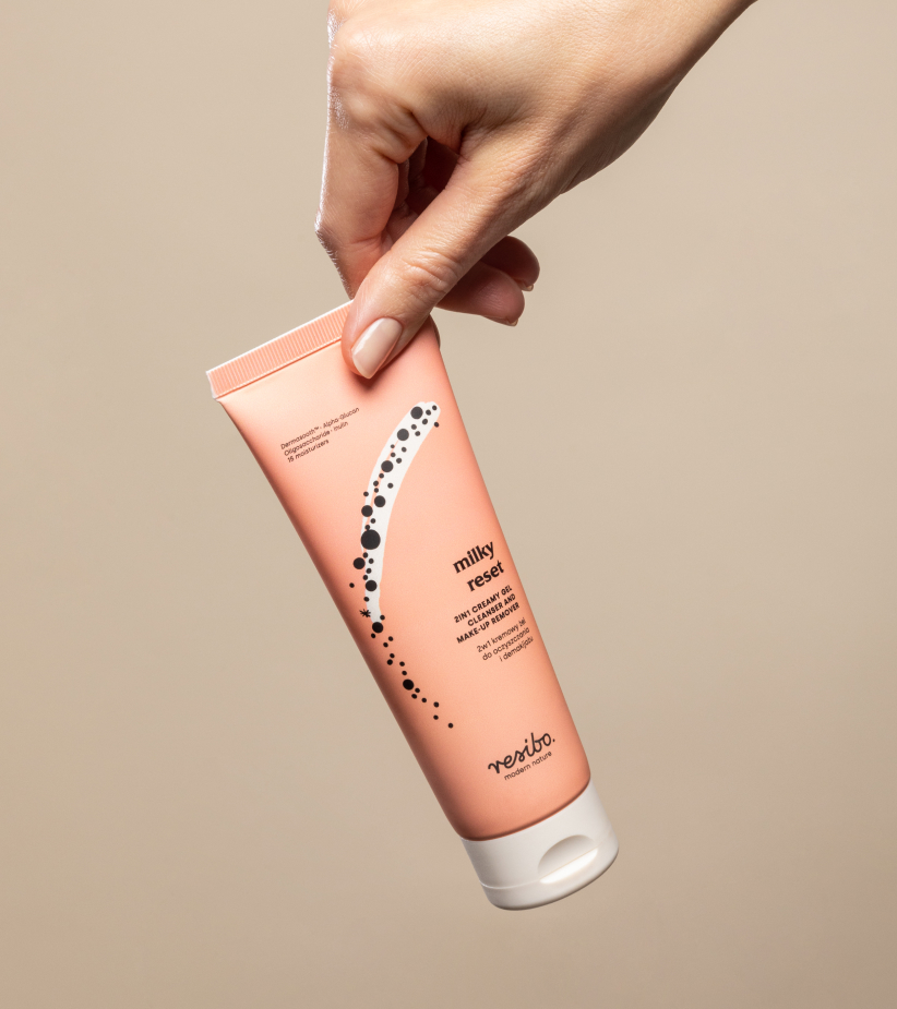 Resibo Milky Reset to innowacyjny, aksamitny żel do oczyszczania twarzy, który łączy moc dwuetapowego demakijażu z delikatnością pielęgnującej formuły. Dzięki wysokiej zawartości emolientów oraz ultrałagodnych substancji myjących, skutecznie usuwa makijaż – nawet wodoodporny – a także filtry UV i zanieczyszczenia nagromadzone w ciągu dnia.
