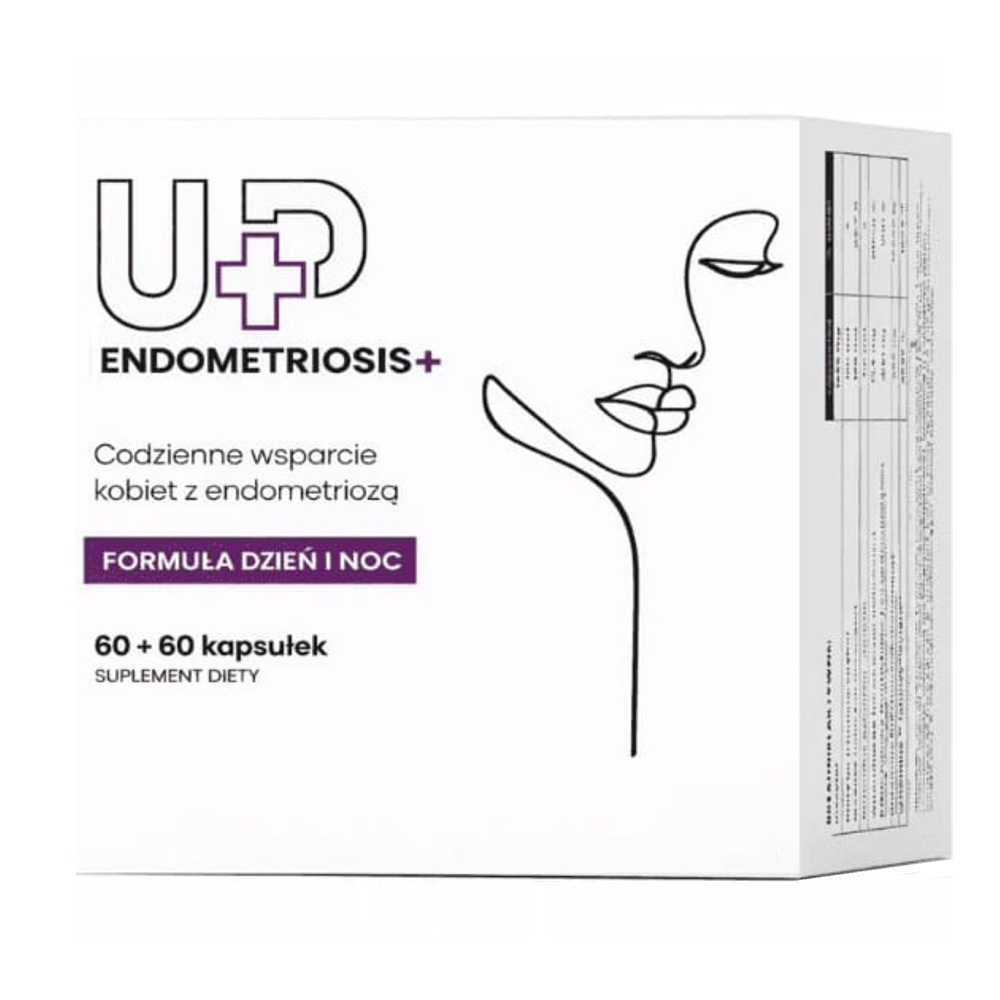 UPENDOMETRIOSIS+ to specjalistyczny suplement diety opracowany przez lekarza i dietetyka. Skład bazuje na substancjach o udowodnionym działaniu, które pomagają zwalczać stany zapalne, ból oraz dyskomfort towarzyszący endometriozie. Unikalna formuła Dzień & Noc (120 kapsułek) zapewnia precyzyjne wsparcie organizmu przez całą dobę.