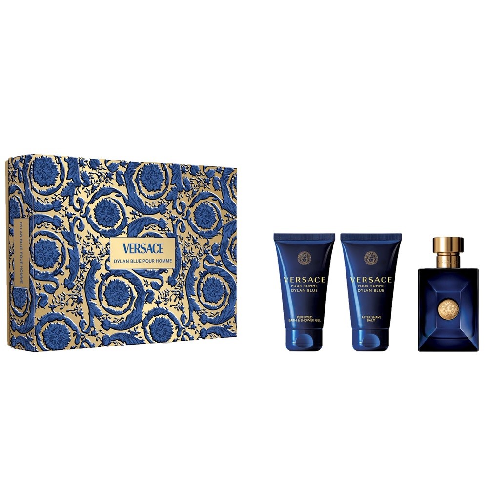 W skład zestawu Versace Pour Homme Dylan Blue wchodzą trzy produkty o pojemności 50 ml każdy: woda toaletowa w sprayu, żel pod prysznic oraz balsam po goleniu. Woda toaletowa zapewnia trwały i wyrazisty zapach, który można stosować na co dzień. Żel pod prysznic delikatnie oczyszcza skórę, jednocześnie pozostawiając ją świeżą i pachnącą. Balsam po goleniu łagodzi podrażnienia, nawilża skórę i harmonizuje z zapachem wody toaletowej, dzięki czemu pielęgnacja po goleniu staje się przyjemniejsza i bardziej kompleksowa.