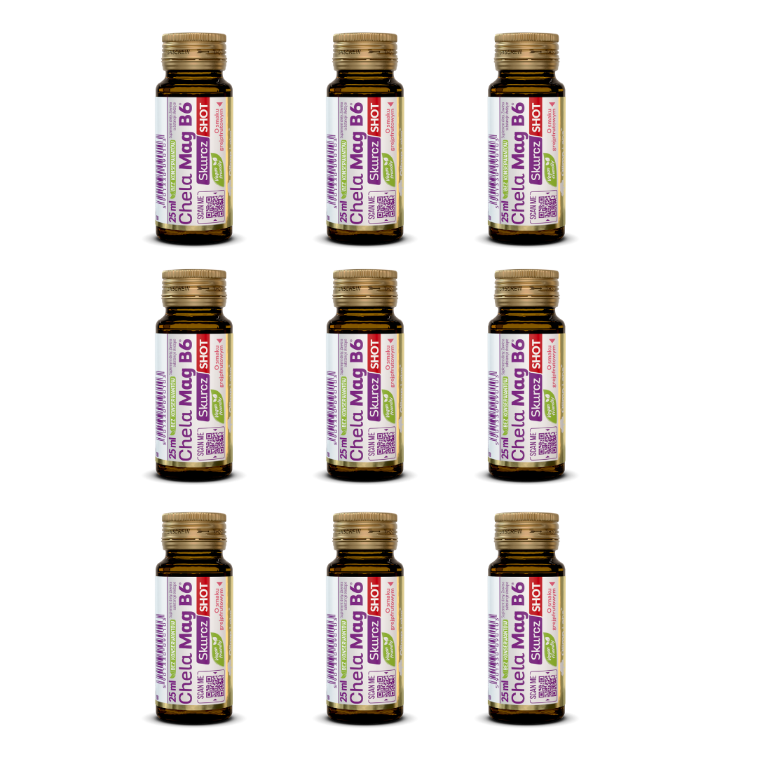 ZESTAW 9 szt x 25 ml OLIMP CHELA MAG B6 Skurcz Shot Smak Grejfrutowy