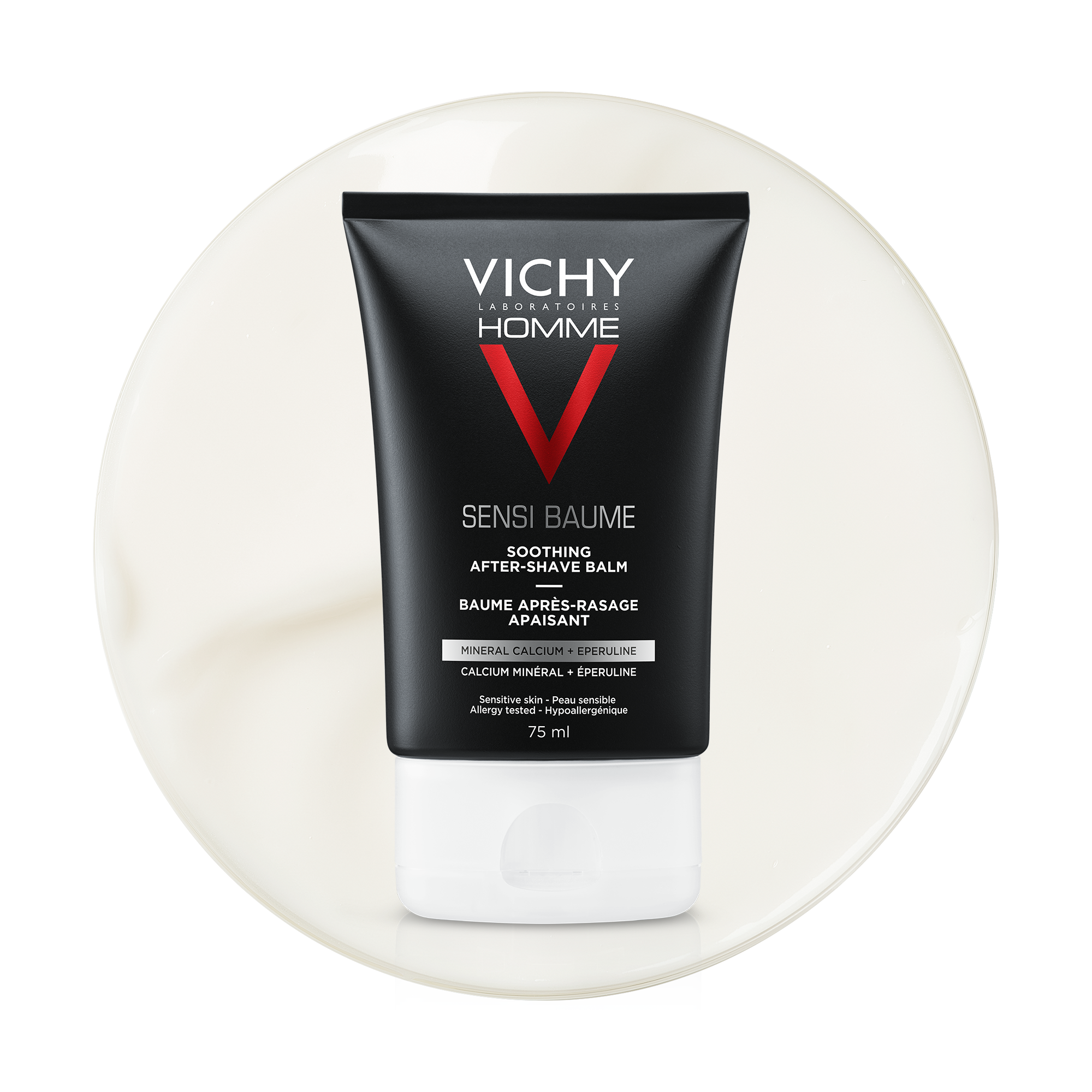 VICHY HOMME Sensi Baume Balsam Po Goleniu - 75ml jest dedykowany mężczyznom o wszystkich typach cery, ze szczególnym uwzględnieniem skóry wrażliwej i podatnej na podrażnienia. Może być stosowany codziennie po goleniu, aby złagodzić skutki mechanicznego uszkodzenia skóry i wspomóc jej naturalną regenerację.