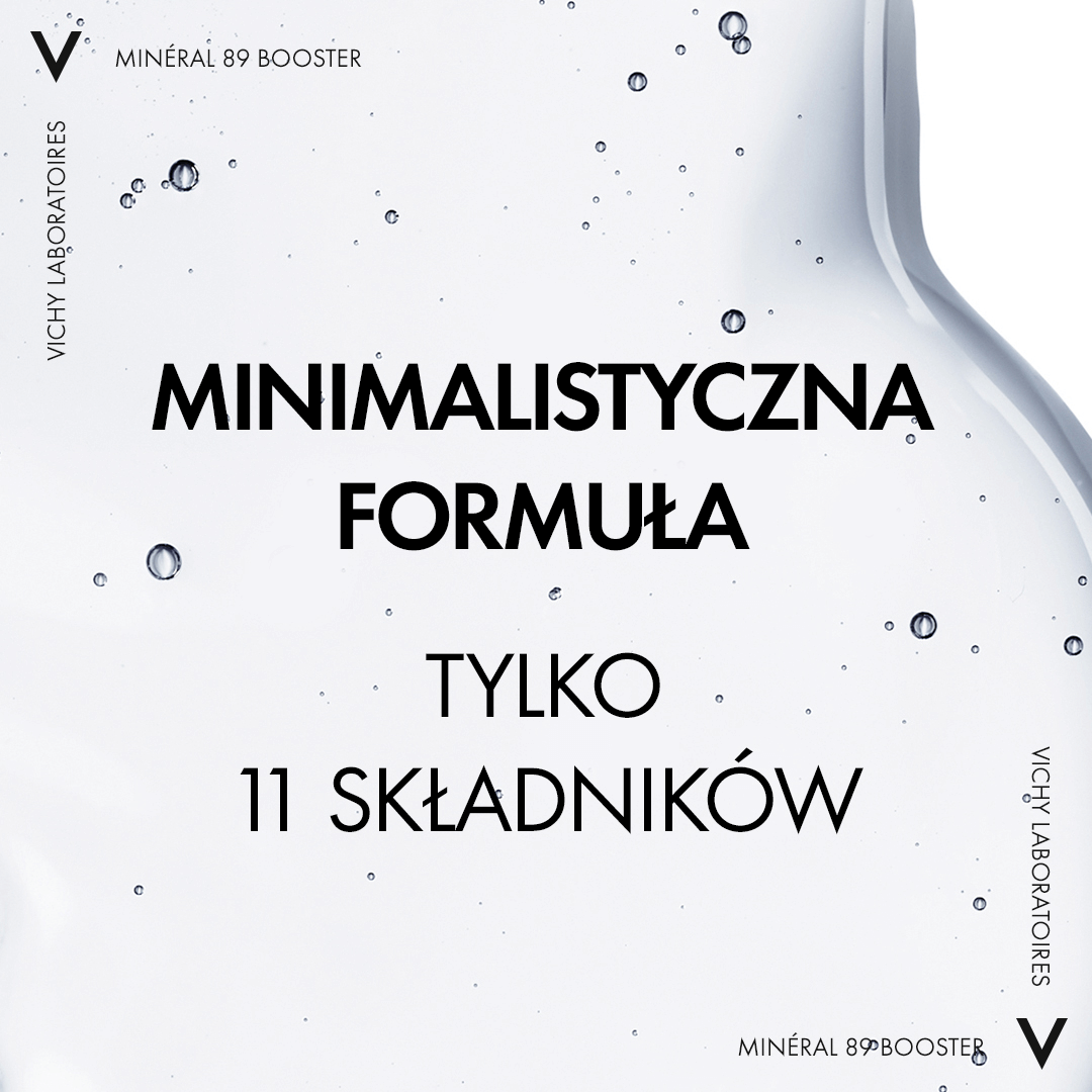 VICHY Minéral 89 Serum Booster Wzmacniający-Nawilżający Z Kwasem Hialuronowym - 50ml to preparat opracowany, by wzmacniać i nawilżać skórę poprzez unikalne połączenie Wody Wulkanicznej Vichy i kwasu hialuronowego. Serum działa na barierę ochronną skóry, wspomagając jej odporność na codzienne czynniki zewnętrzne. Dzięki żelowej konsystencji produkt szybko się wchłania, nie pozostawiając tłustej lub lepkiej warstwy.